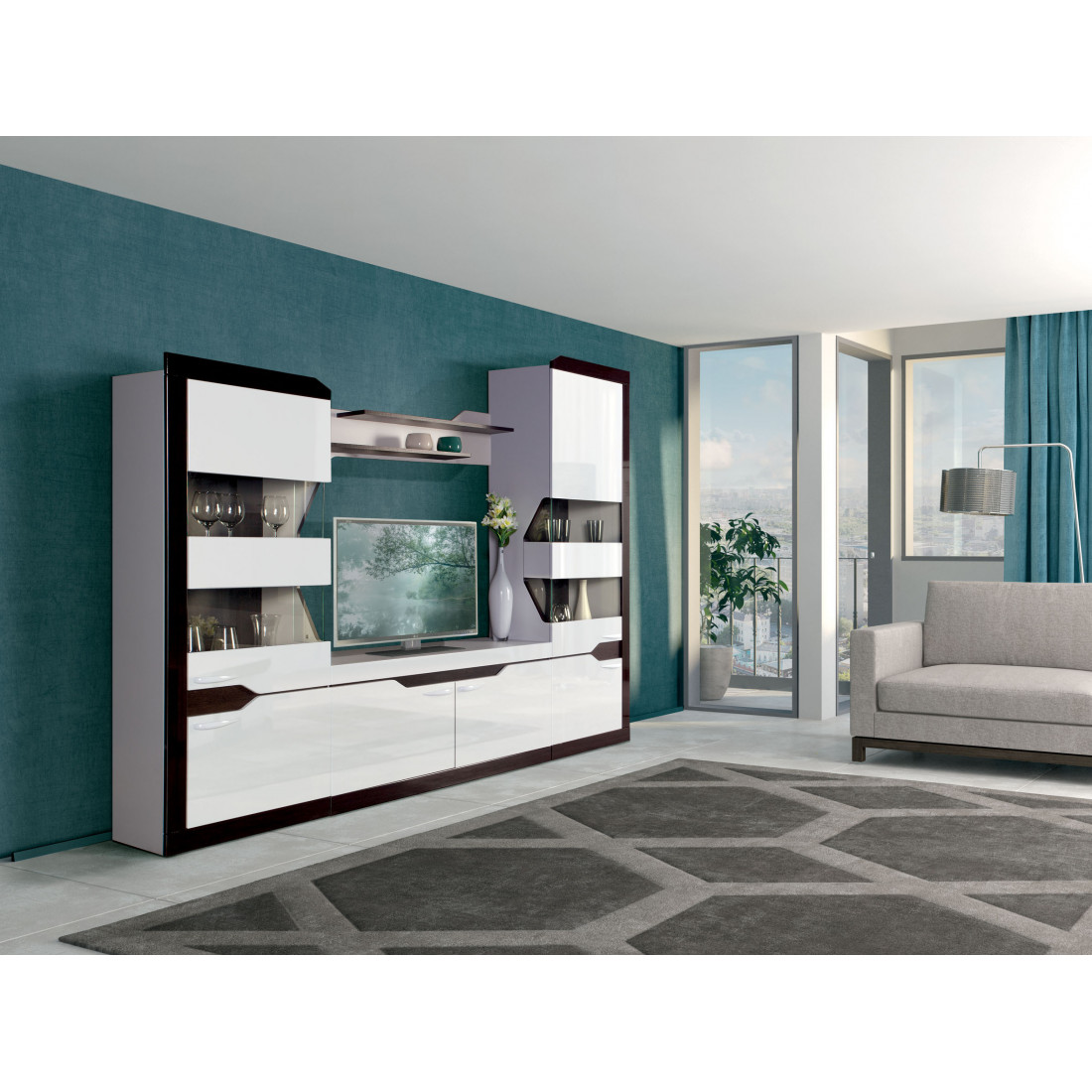 Фасады: МДФ, декоры – белый глянец, венге глянец, стекло